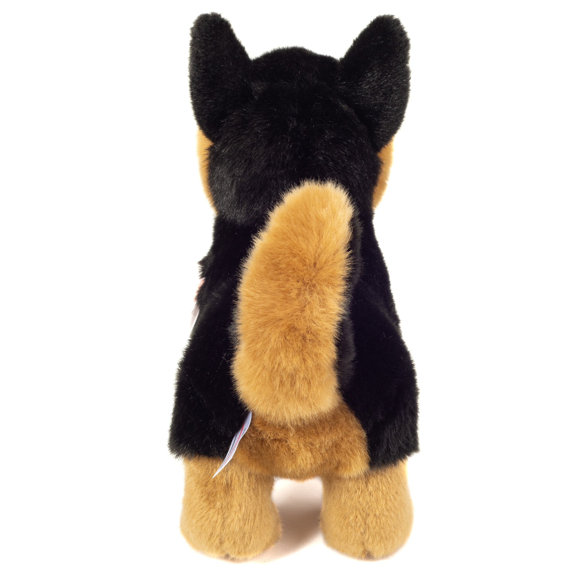 Deze jonge herdershond van Teddy Hermann is een plaatje om te zien. Met zijn zachte zwart beige pluche vacht staat hij stevig op zijn pootjes. Een knuffel om van te houden. Hoogte: 23 cm.