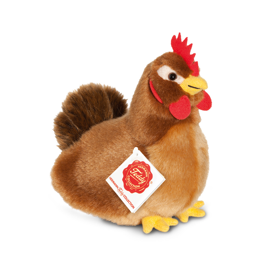 Deze mooie kip van Teddy Hermann is gemaakt in verschillende tinten zachte bruine pluche. Ze heeft een rode kam op haar kop en ook de bijpassende haan is in onze webshop verkrijgbaar. De hoogte van deze knuffel is zittend: 16 cm.