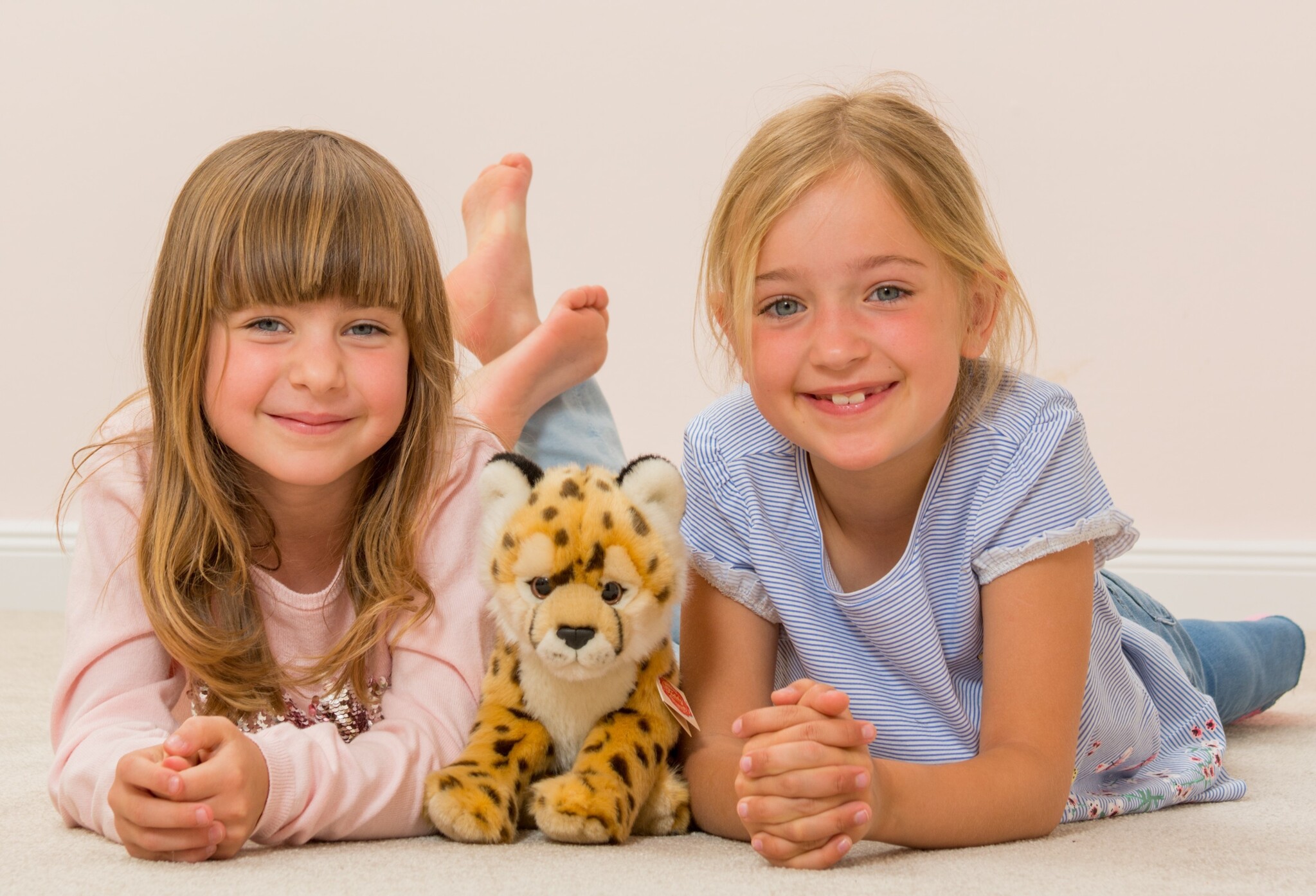 Dit luipaard van Teddy Hermann gaat niet graag meer op jacht. Hij houdt van knuffelen en met zijn zachte pluche gevlekte vacht is hij heel aaibaar. Hoogte: 26 cm.