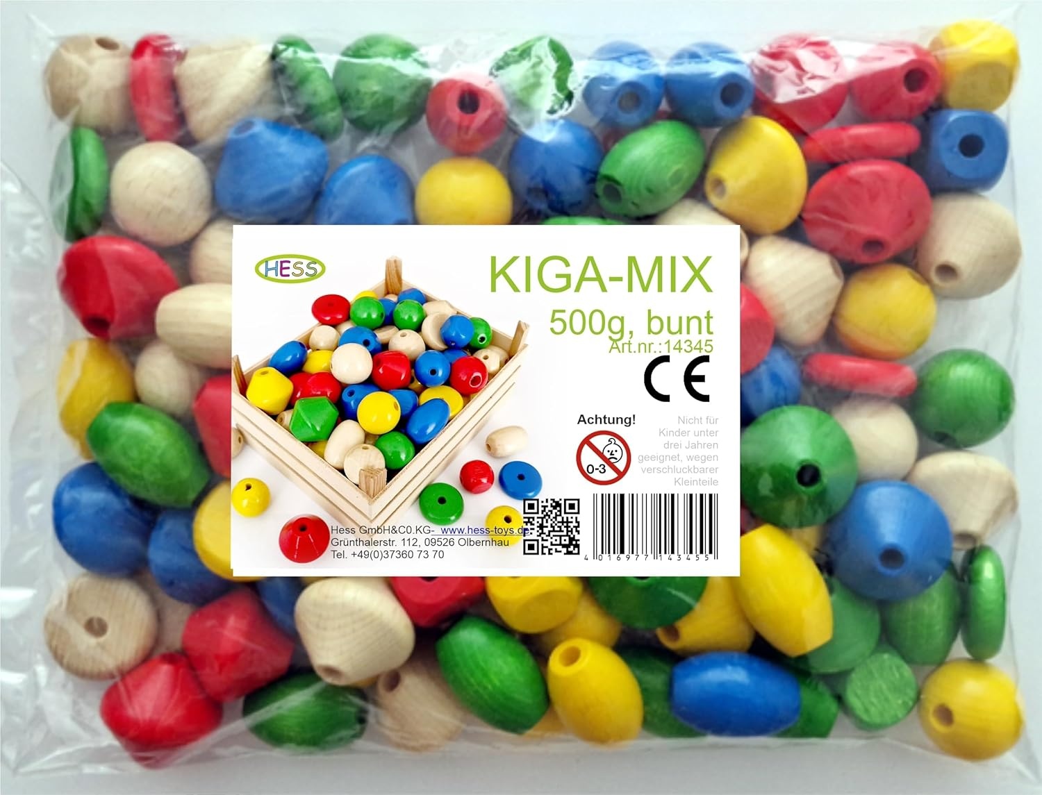 Deze set bestaat uit 500 g kleurrijke houten gemengde kralen. Geschikt voor vele kunst- en knutselprojecten. Het is 100% beukenhout en gemaakt in Duitsland. Vakmanschap en kwaliteit door Hess. Meer informatie