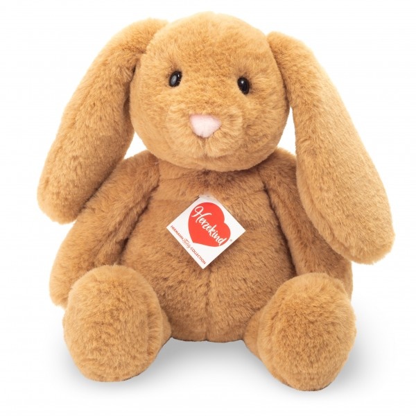 Deze zittende haas van Teddy Hermann is uitgevoerd in een zachte caramelkleurige pluche stof. Hij zit lekker op zijn gemak te kijken wat je aan het doen bent. Zijn pootjes zijn van een fluweelzachte stof gemaakt. Hoogte zittend: 21 cm.