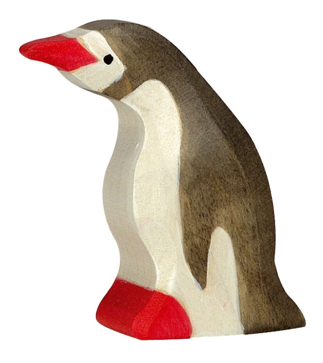 Deze pinguïn van Holztiger zit iets voorover en kijkt voor zich uit. Afmeting lxbxh: 4x1.9x5 cm