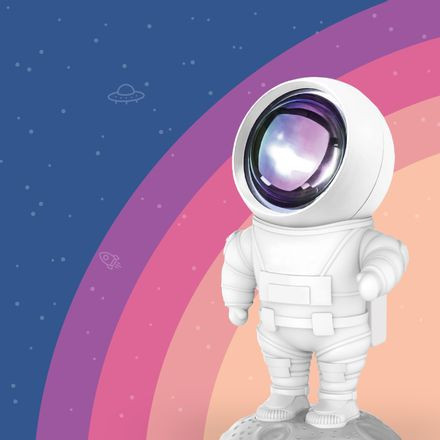 Een kleine, lichte lamp die gemakkelijk mee te nemen is, waar je ook gaat. Voor alle liefhebbers van de ruimte. Laat de kleine Astro je meenemen op reis en je in slaap sussen. Deze lamp werkt op (oplaadbare) batterijen, waardoor het product draagbaar is.