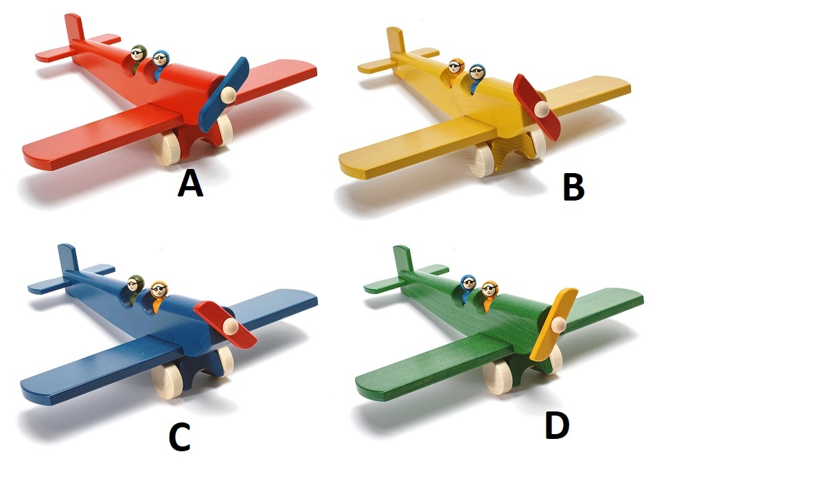 De propeller en de wielen kunnen draaien, de piloten kunnen eruit gehaald worden. Ook als decoratie voor op de kinderkamer is dit vliegtuig heel mooi.